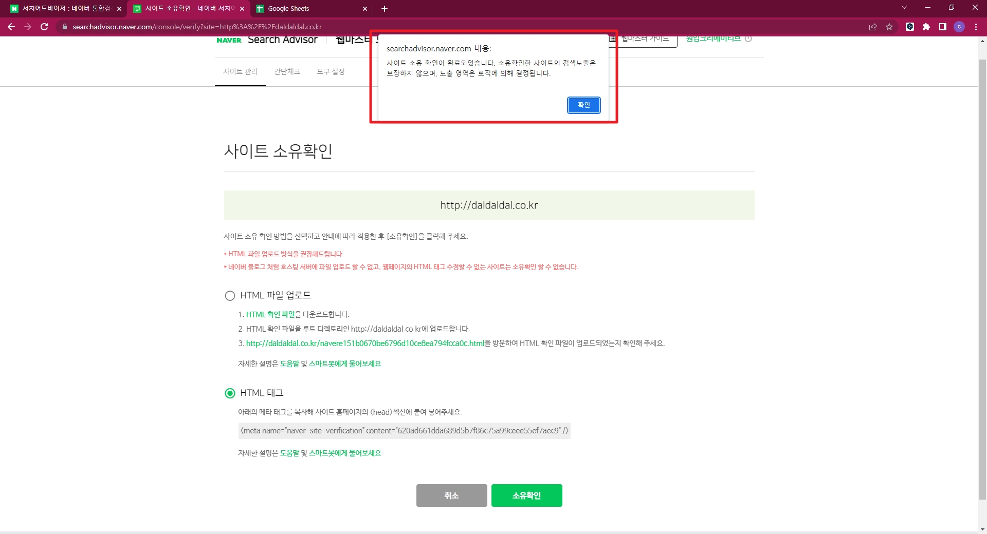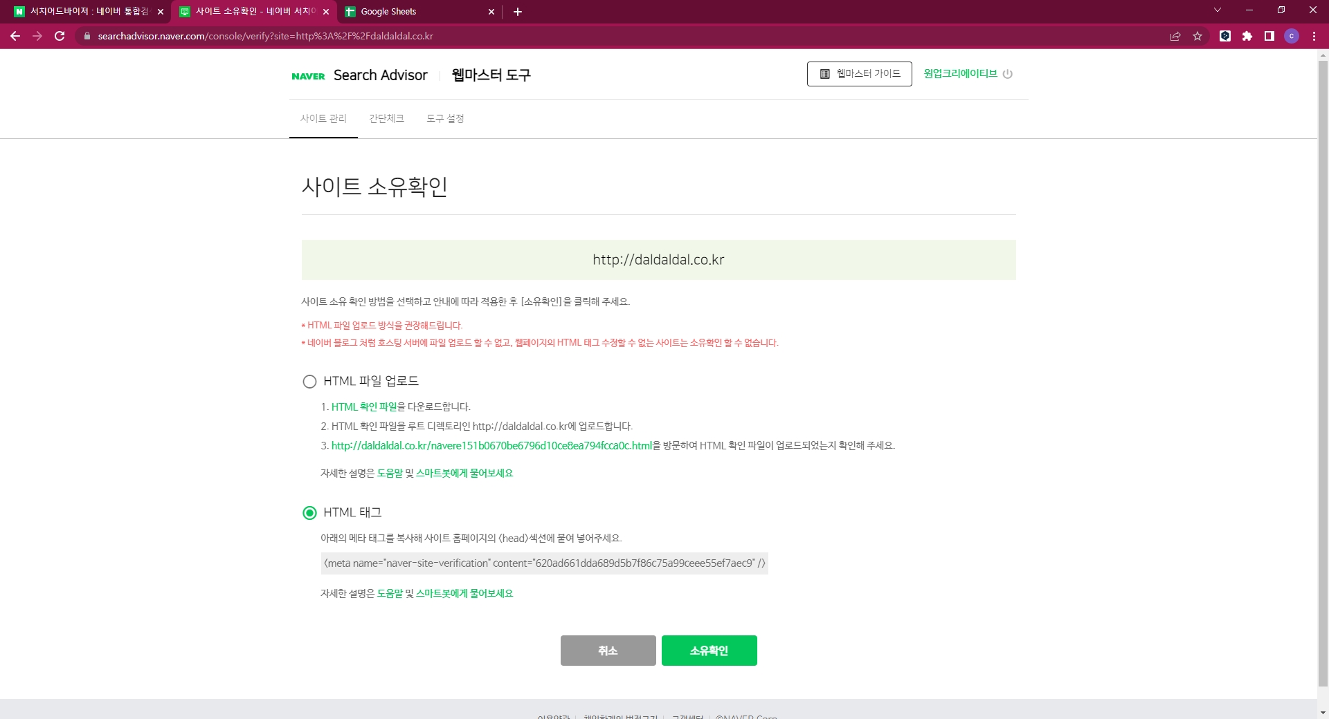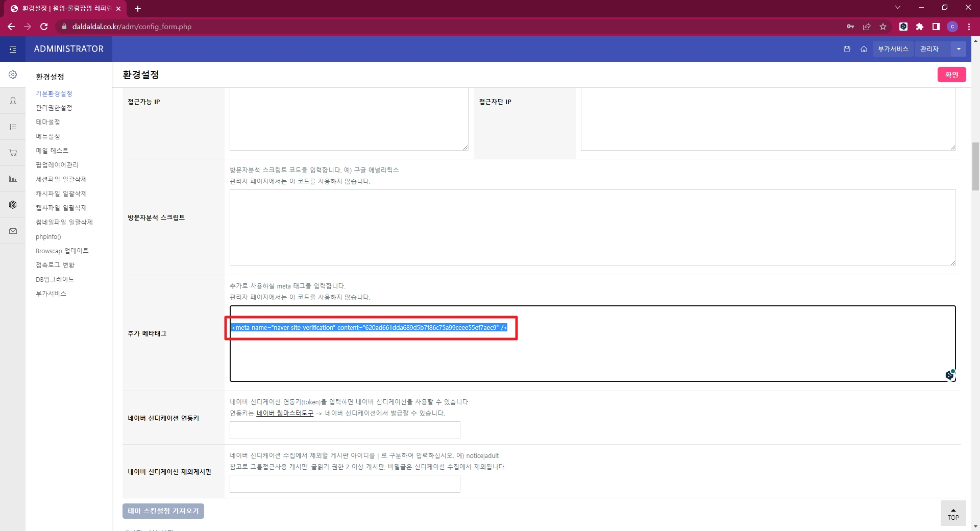 네이버에서 제공하는 html 태그 코드를 복사해서  등록을 원하는 관리자 페이지에 입력합니다.