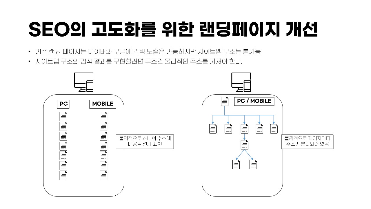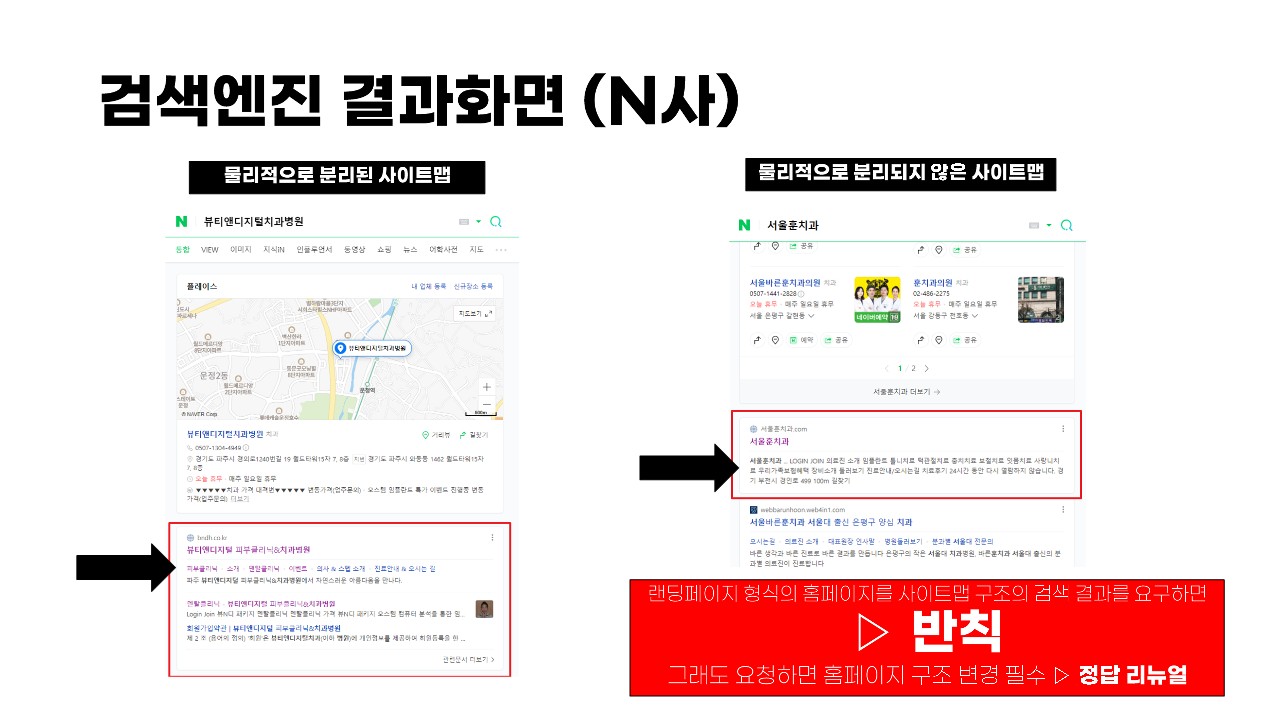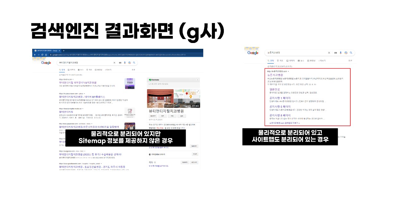 검색엔진이 좋아하는 홈페이지 구조 모든 검색엔진 공통사항으로 각각의 검색엔진마다 따로 등록 웹마스터도구 (웹어드바이저도구)에 필수 등록 적정 메타 정보 등록 사이트맵 파일 등록 ROBOT 규칙 등록 구글에 최적화 될려면 더욱 중요요소 코어웹 바이탈 (사이트 접속 속도) -> https://pagespeed.web.dev/ HTTPS 사용 유무 모바일 친화적인 반응형 홈페이지 물리적으로 분리된 주소 보유 자주 포스팅 되는 데이터 정보 유무