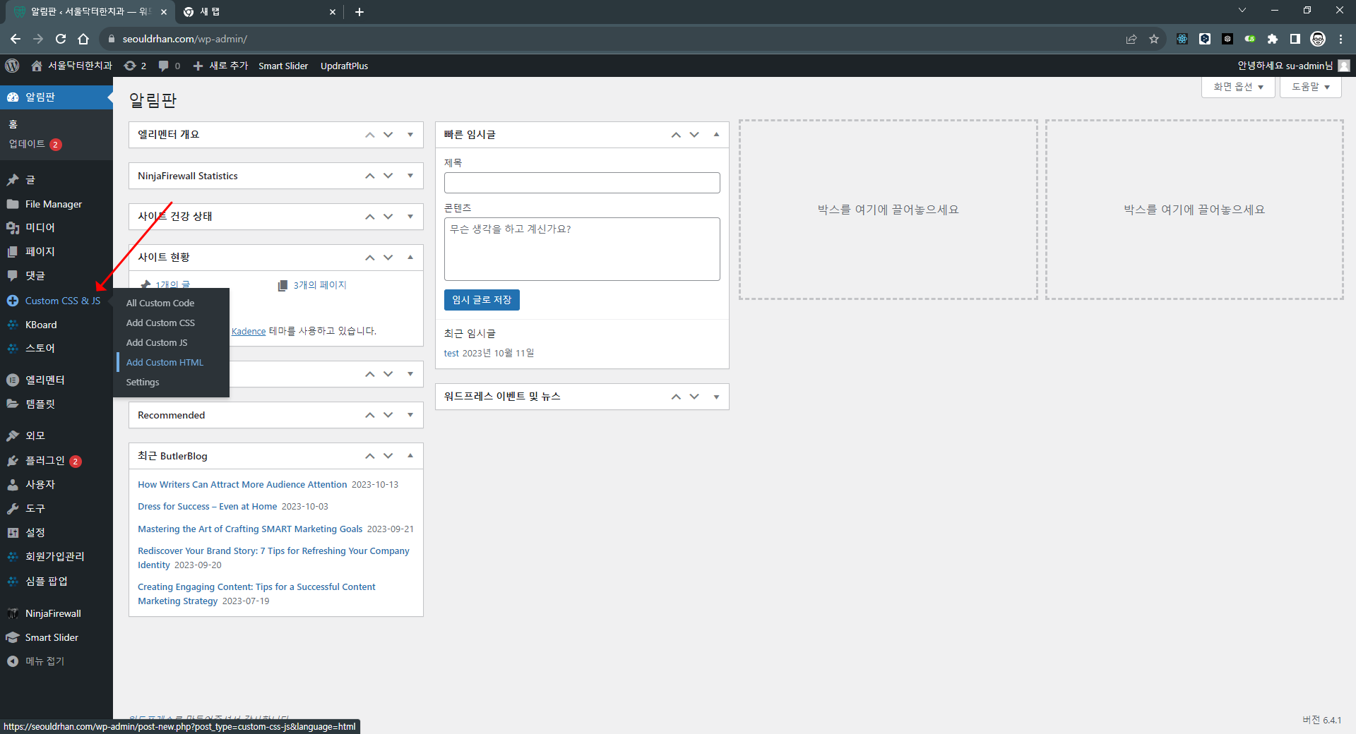 관리자 프로그램에 메뉴가 없을경우 개발팀에 문의해주세요.
