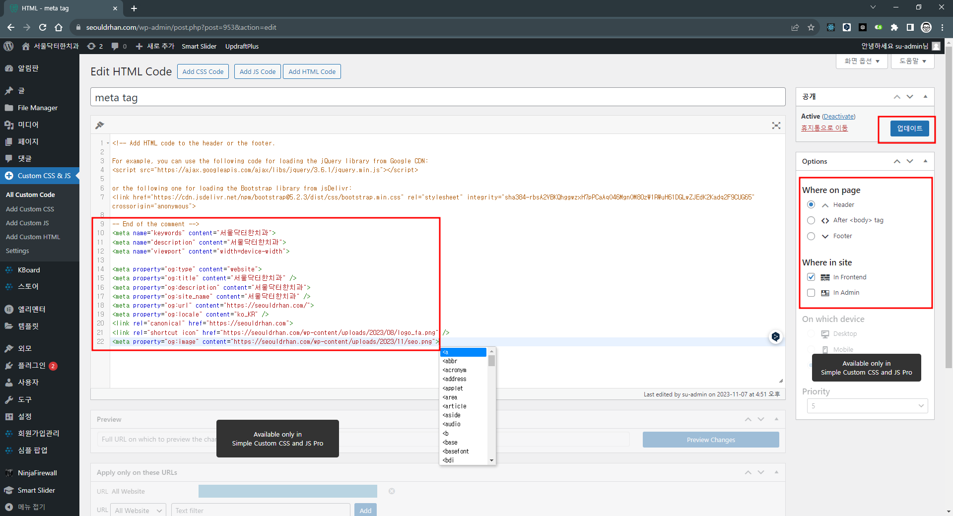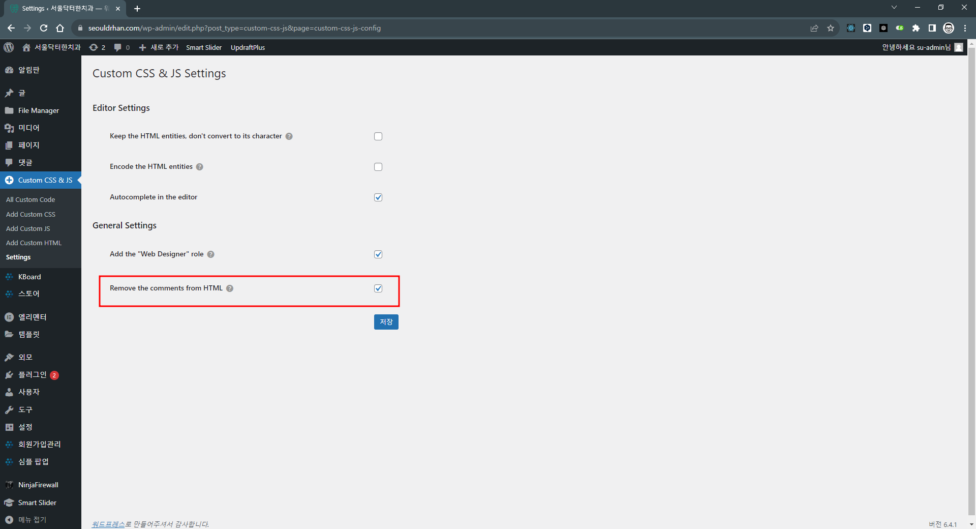 주석을 제거하고 싶을 경우 환경설정에서 주석해지를 체크하고