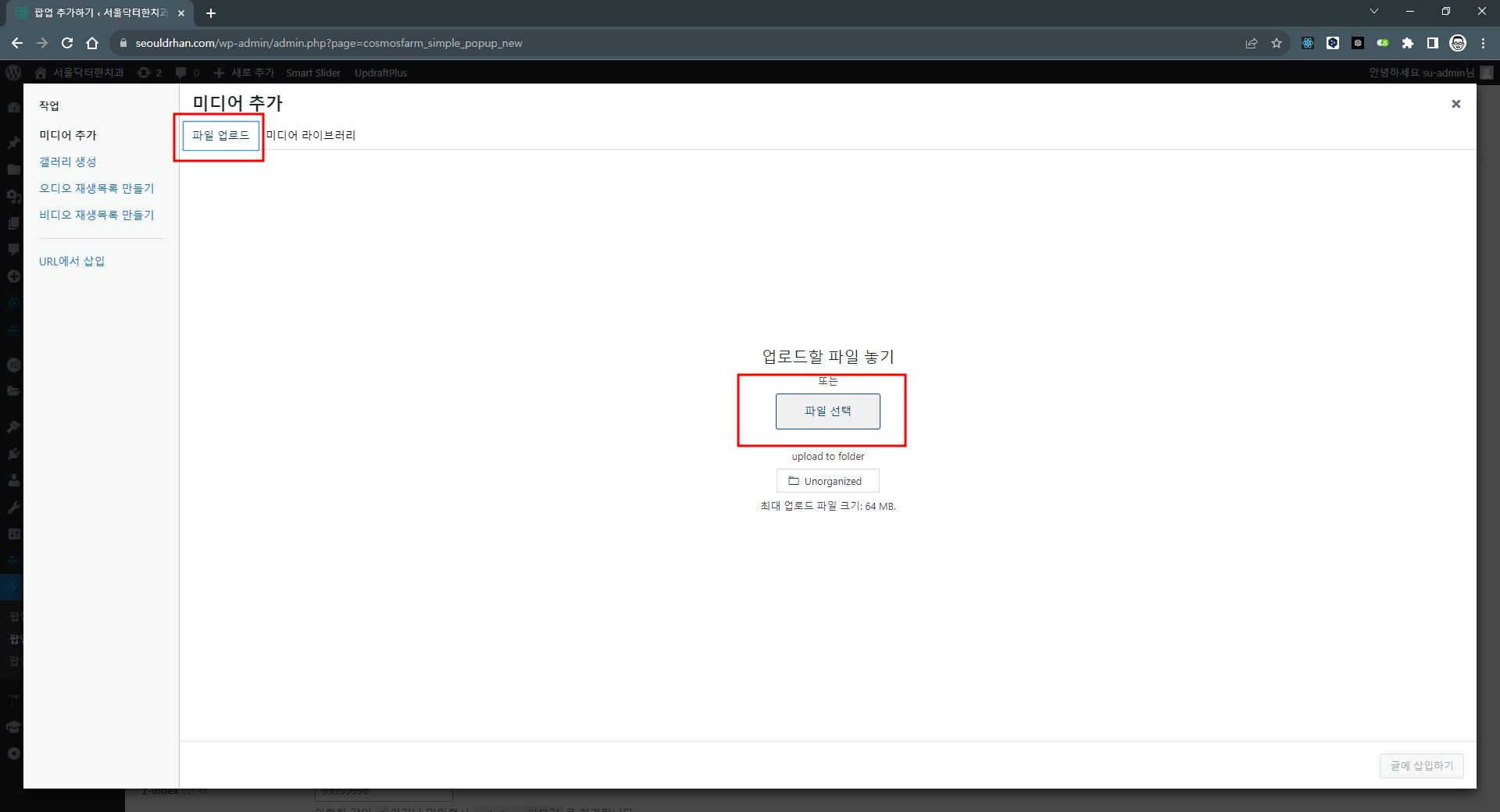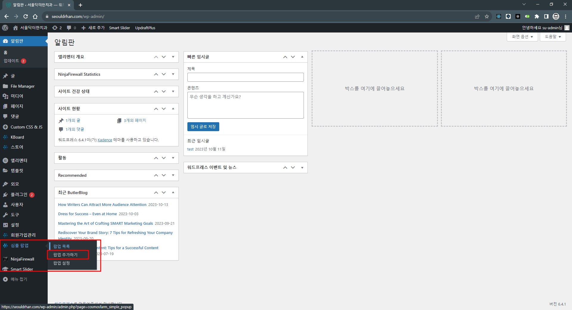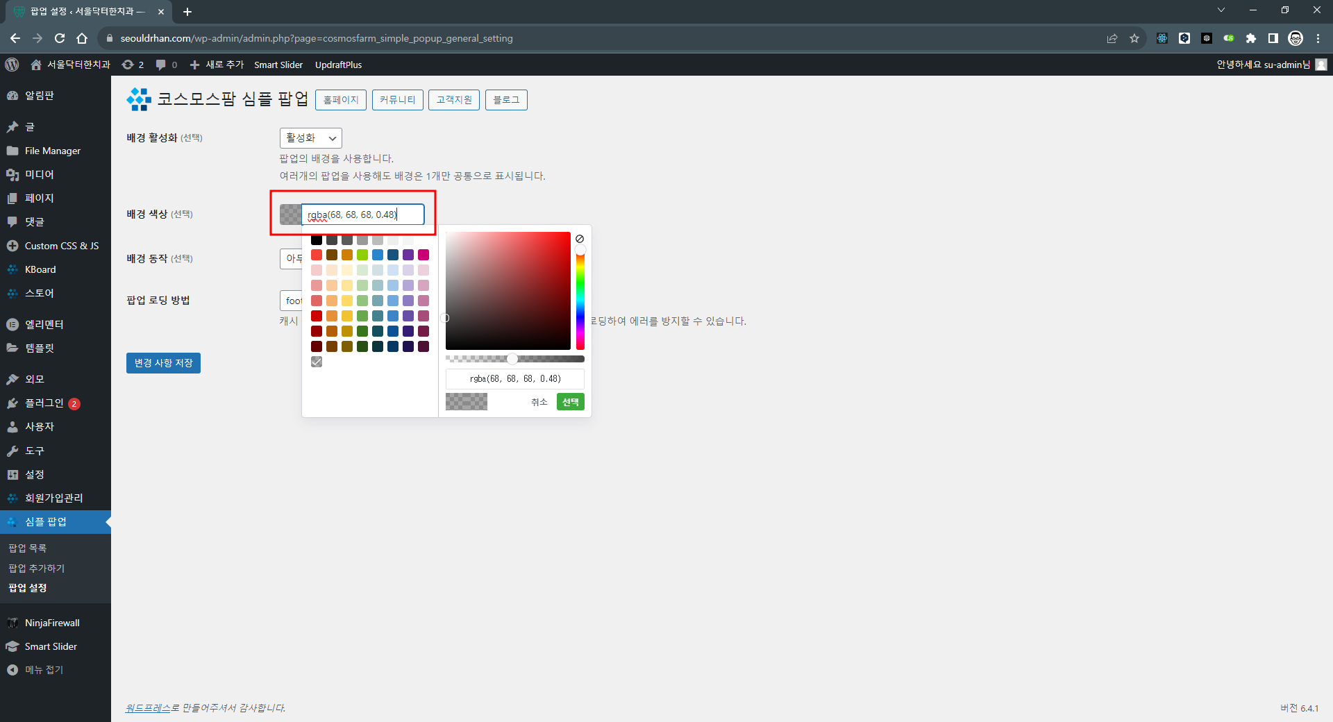- 활성화/비활성화로 팝업을 사용여부를 결정할 수 있으며 메인화면에 표시를 체크를 반드시 해야합니다.