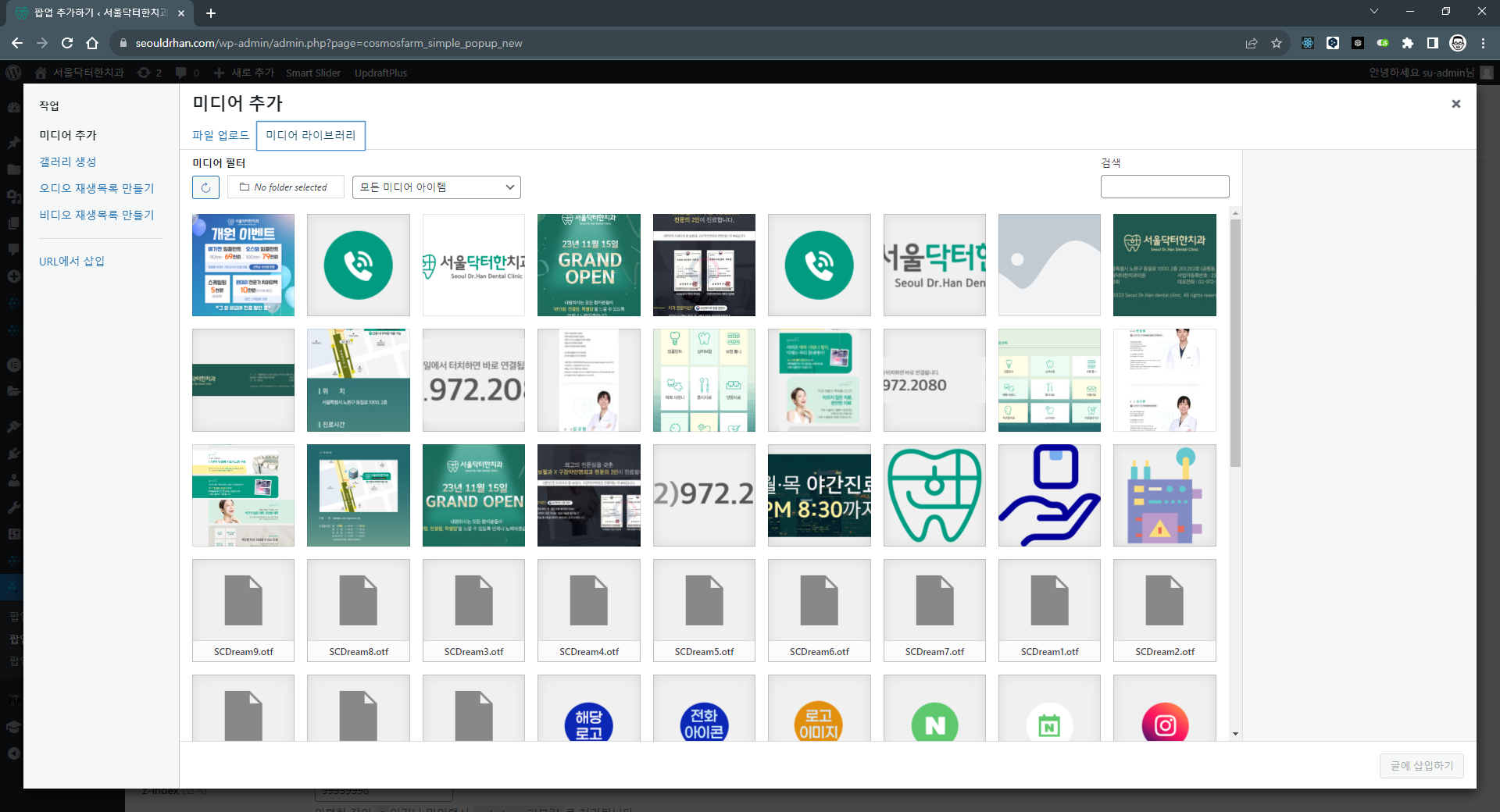 - 랜딩이 아닌 사이트맵용 홈페이지의 경우 메인과 서브페이지를 서로 다른 팝업을 지정할 수 있습니다.