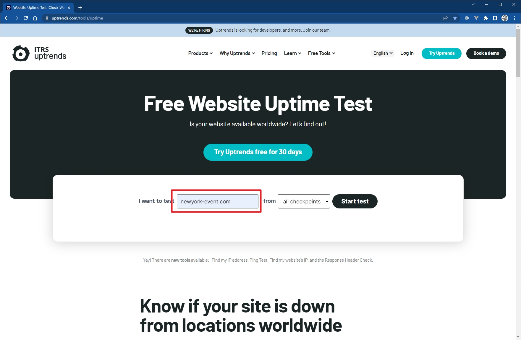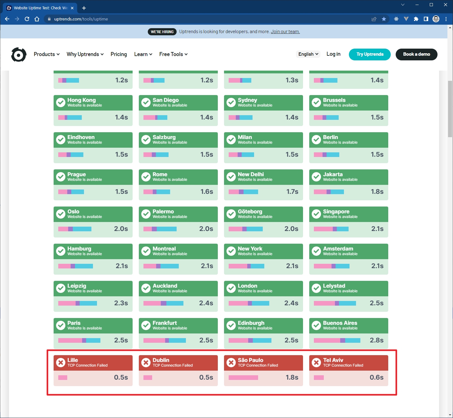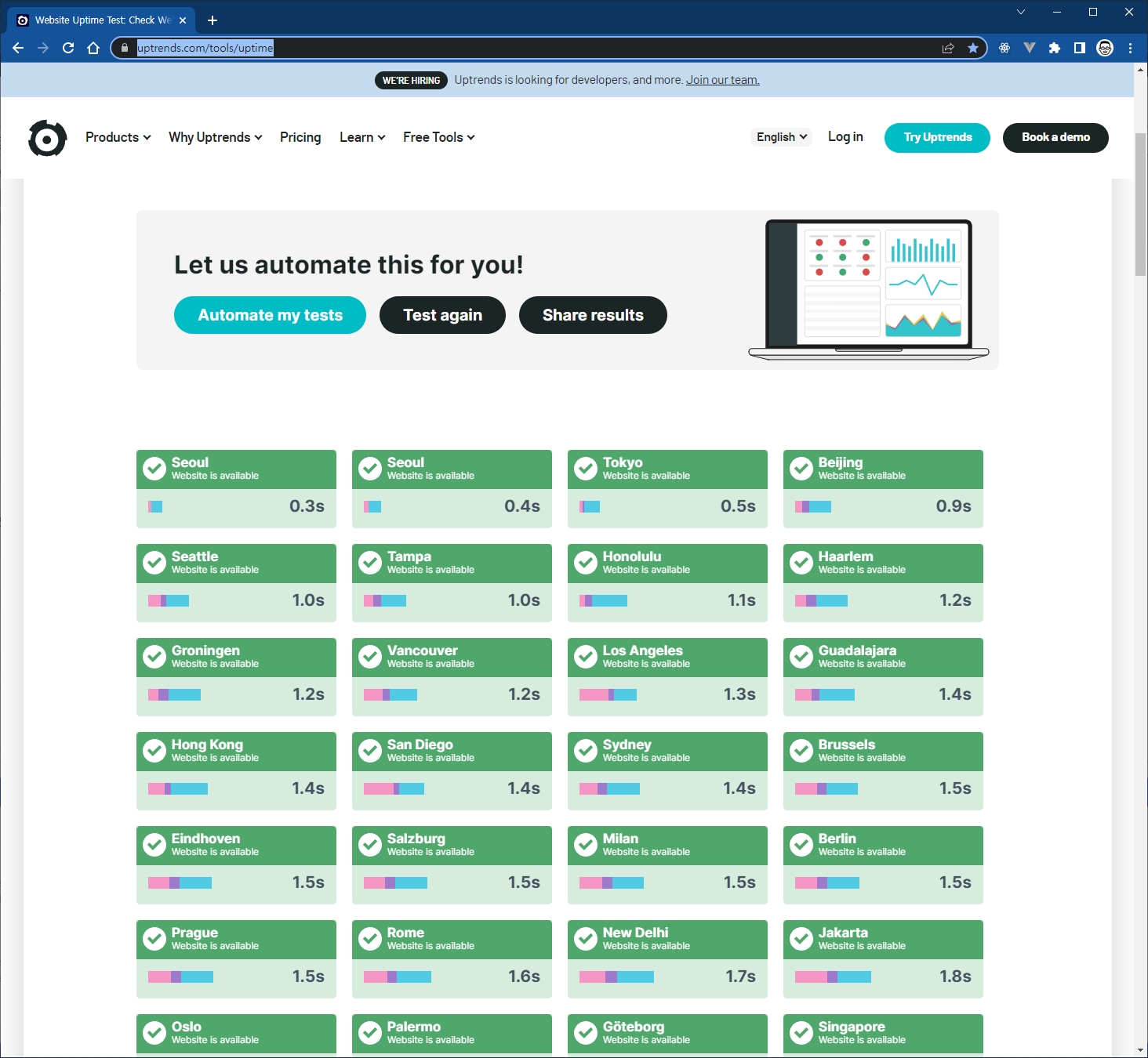 사이트를 접속해서 주소를 입력하고 테스트를 시행하면 전세계 주요도시에서의 접속 테스트를 진행합니다.