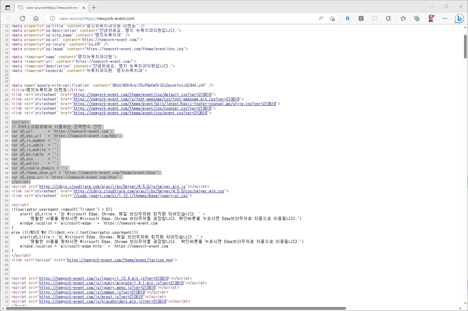 브라우저에서 페이지소스 보기를 통해서 코드 소스를 확인한 후 아래의 코드가 보이면 그누보드로 제작된 홈페이지입니다.