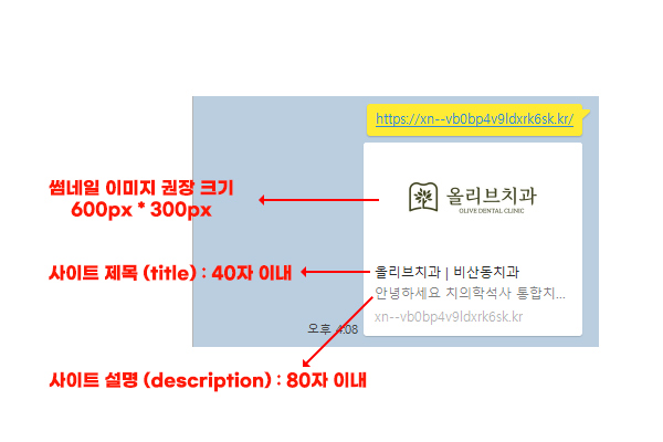 사이트 설명(description) : 80자 이내 (누군가는 77자라고 주장도 함, 구글은 160자로 네이버에 비해 2배로 허용치가 많음)